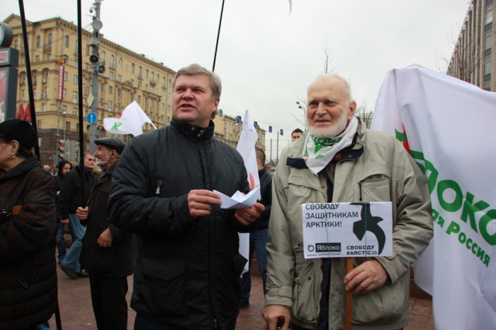 27 октября лидер «ЯБЛОКА» Сергей Митрохин, Председатель фракции «Зеленая Россия» партии «ЯБЛОКО», советник РАН Алексей Яблоков, член Политкомитета партии, руководитель Общественной наблюдательной комиссии Москвы Валерий Борщев приняли участие во всероссийской акции «Свободу защитникам Арктики» и Марше за свободу узников Болотной и других политзаключенных.
