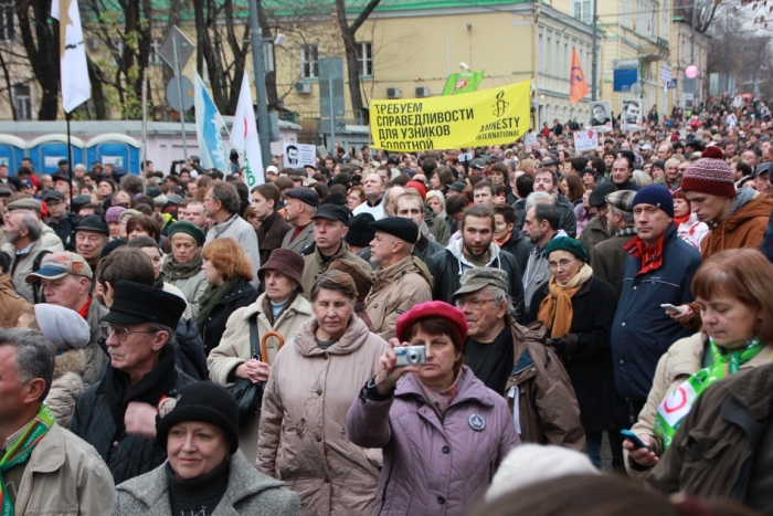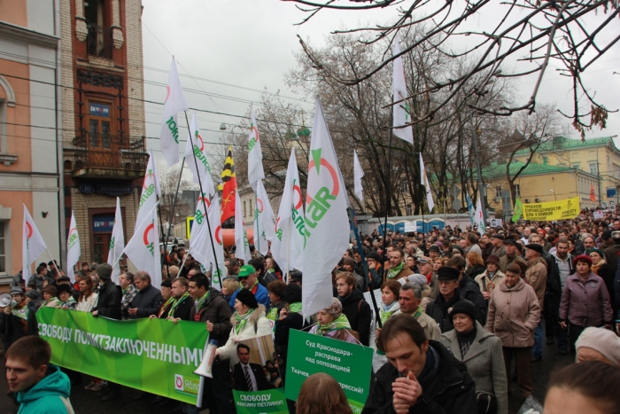 Сергей Митрохин возглавляет колонну на Марше в поддержку политзаключенных