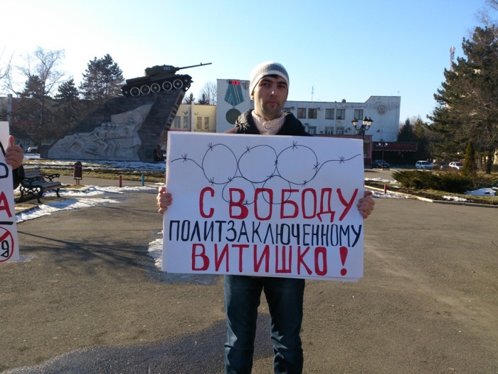 В руках экологические активисты держали плакаты с надписями «Кавказ устал умирать за металл», «УГМК! Руки прочь от Кавказа и Черноземья», «УГМК+Путин=Экоцид России», «Свободу политзаключенному экологу Витишко».