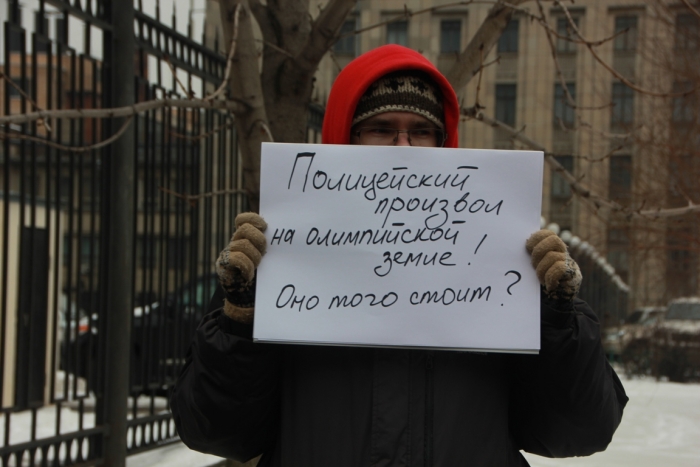 Вчера в Краснодаре полиция задержала активиста местного «ЯБЛОКА» Игоря Харченко. Он был осужден на 5 суток. 3 февраля 15 суток получил эколог Евгения Витишко за «нецензурную брань» на остановке. Витишко проходит фигурантом по так называемому «делу о порче забора» на даче губернатора Краснодарского края Александра Ткачёва. 20 декабря Туапсинский суд заменил ему условный срок на три года колонии. Жалоба по этому делу будет рассмотрена 22 февраля 2014 года. По этому же делу проходит и Сурен Газарян, он был вынужден был покинуть страну.