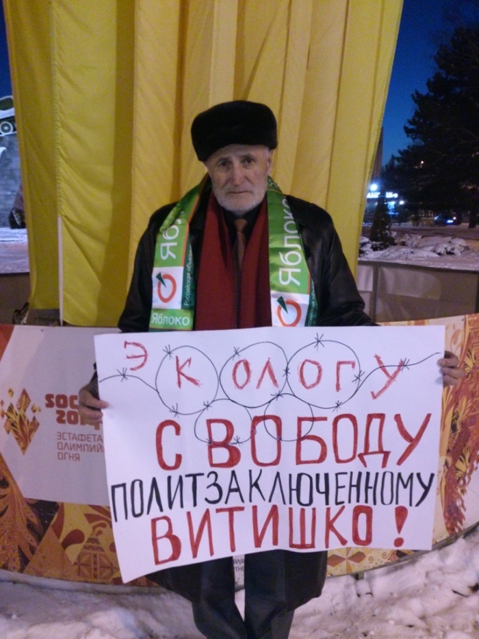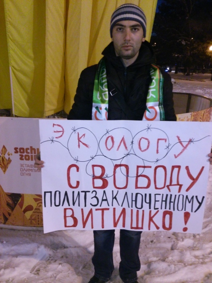 Во Владикавказе на площади Победы руководитель северо-осетинского отделения партии «Яблоко» Анатолий Сидаков и активист партии, член фракции «Зелёная Россия» Алан Аликов провели серию одиночных пикетов в поддержку краснодарского эколога Евгения Витишко.