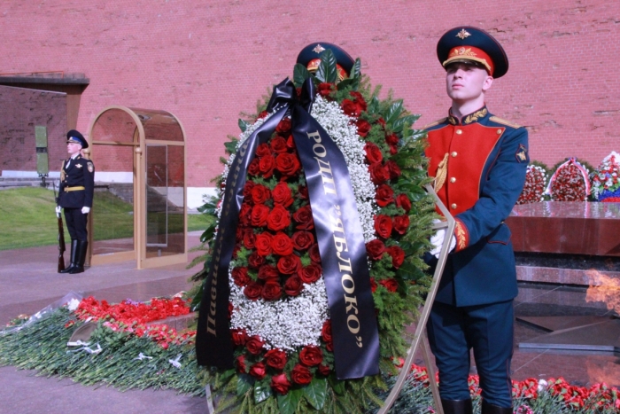 В канун Дня Победы лидеры и активисты партии «ЯБЛОКО» возложили венок и цветы к Вечному огню и Могиле Неизвестного Солдата в Александровском саду.