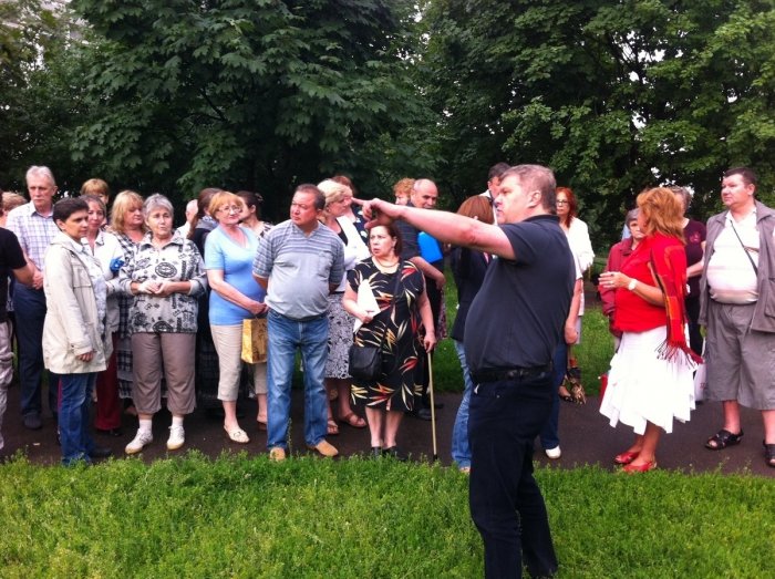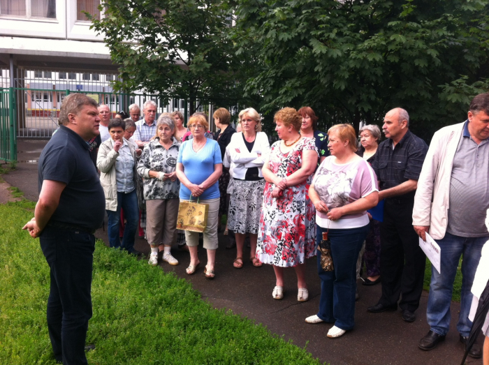 Сергей Митрохин перед жителями Хорошево-Мневники