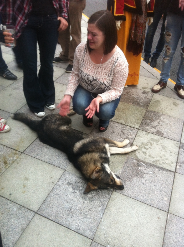 Флорин отошел в сторону офиса партии «ЯБЛОКА» на Пятницкой, чтобы с помощью Интернета и телефона выяснить, что надо делать в таких случаях. Узнав в ветеринарной службе, что собакам необходимо ввести внутримышечно определенный препарат, активист «ЯБЛОКА» вернулся к месту, где находились собаки, но не обнаружил их там. Обойдя улицу с обоих сторон, Дмитрий уже намеревался идти к метро, как услышал со стороны Пятницкой, на которой проходил праздник, собачий вой.