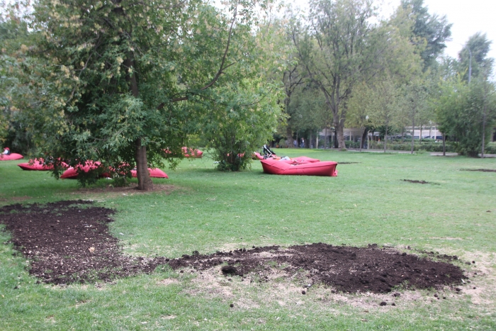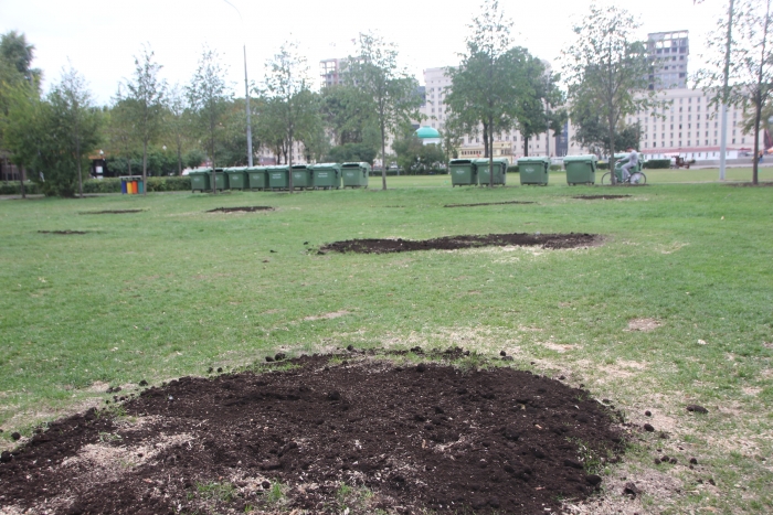 Представители «ЯБЛОКА» также обнаружили красные метки на некоторых деревьях и рулонные газоны.