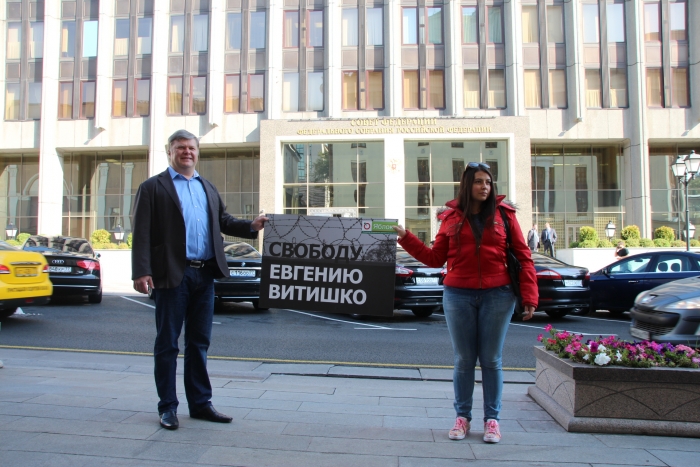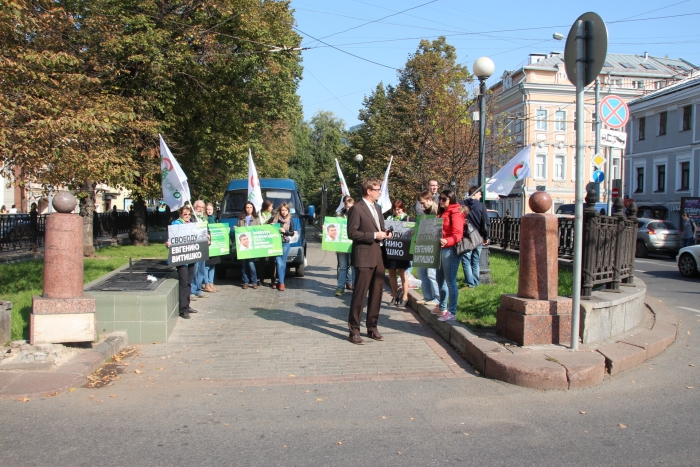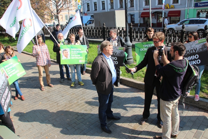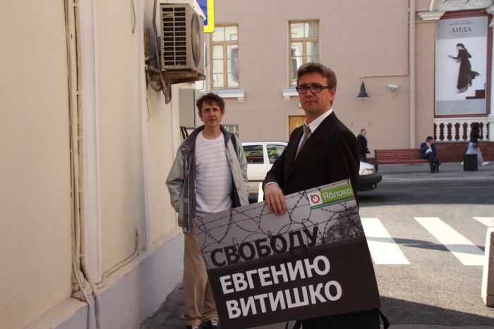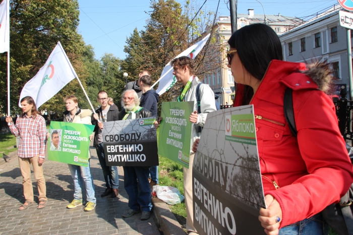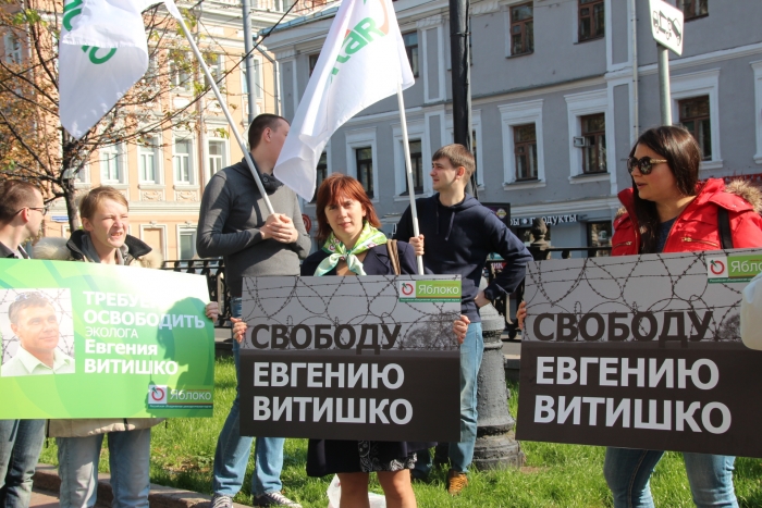 Сегодня в центре Москвы партия «ЯБЛОКО» провело пикет в поддержку политзаключенного эколога Евгения Витишко.