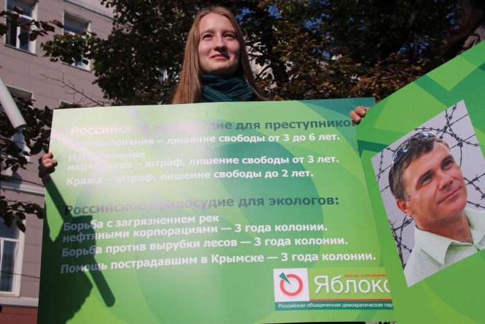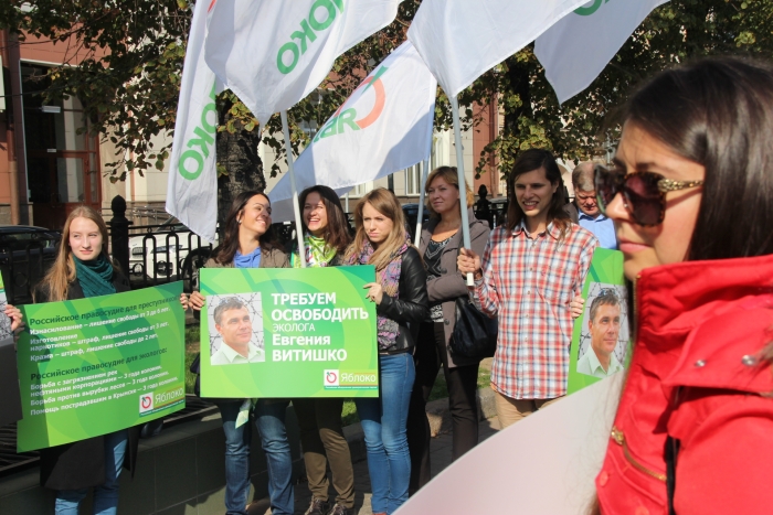 Митрохин рассказал, что по всей России «ЯБЛОКО» совместно с экологами проводит серию пикетов в поддержку Евгения Витишко. В Москве ее открыла советник председателя партии «ЯБЛОКО» Софья Русова. 17 сентября она провела пикет у здания Генпрокуратуры.