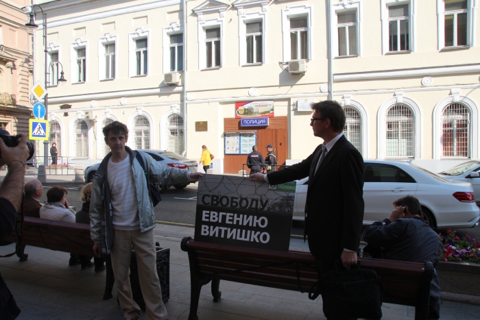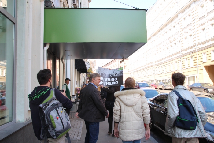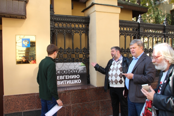 Закончив акцию на Неглинной, часть активистов, во главе с Сергеем Митрохиным, приняли решение вручить плакат с лозунгом, требующим освобождения эколога Евгения Витишко, Генпрокуратуре.