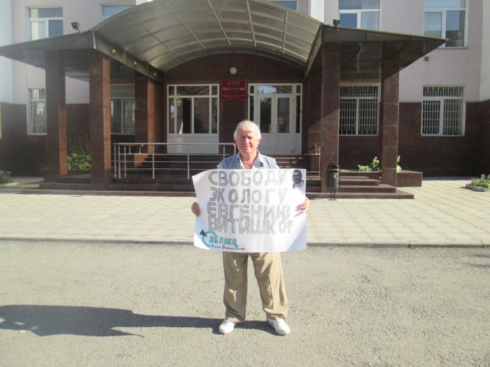 На прошедшем 23 сентября собрании актива фракции «Зеленая Россия» партии «ЯБЛОКО» в Кабардино-Балкарии было принято решение подключиться и поддержать кампанию за освобождение эколога Евгения Витишко. На улицах столицы республики Нальчике активисты партии провели серию одиночных пикетов у здания администрации города и около здания Верховного суда КБР.