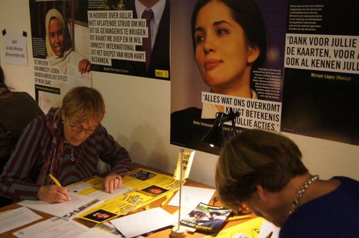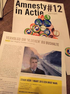 10 декабря в штаб-квартире Amnеsty Internation в Амстердаме прошел суточный марафон написания писем в поддержку пяти политзаключенных из разных стран. Около тысячи голландцев написали слова поддержки в тюрьмы США, Китая, Саудовской Аравии, Узбекистана и в Россию, экологу Евгению Витишко.