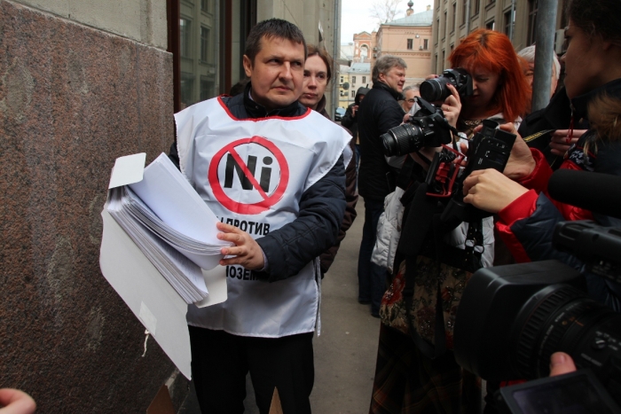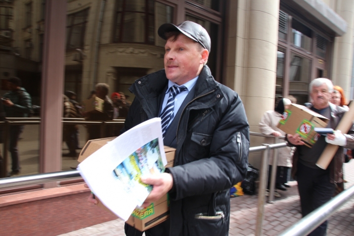«Сегодня происходит очень важное событие, мы видим проявление зрелого гражданского общества, которое сопротивляется очевидному произволу», – сказал лидер «ЯБЛОКА» Сергей Митрохин, участвующий в передаче подписей.