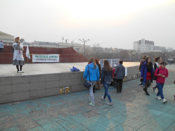 27 апреля в Чите на центральной площади имени Ленина региональное отделение партии «ЯБЛОКО» провело согласованный митинг «Зеленые слезы серого города» в защиту парков и скверов.