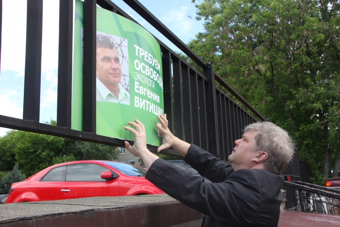 Несколько плакатов были посвящены преследованиям экологов, в частности, Евгения Витишко: «Требуем освободить эколога Евгения Витишко», «Экологов травят, министерство молчит».