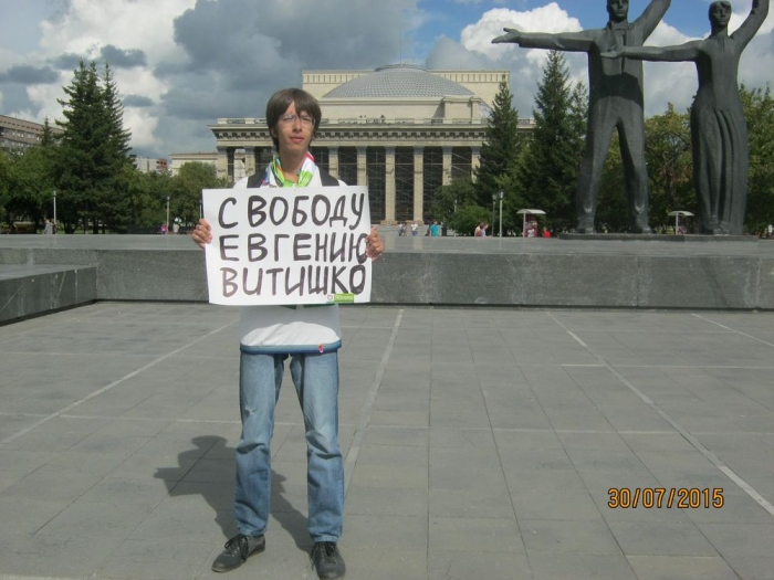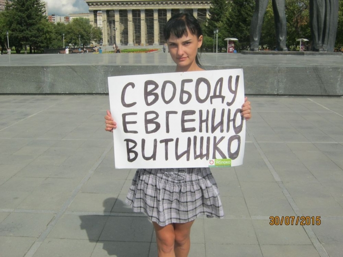 30 июля активисты Новосибирского молодежного «Яблоко» Светомир Юн и Мария Траханова провели серию одиночных пикетов с требованием освободить эколога Евгения Витишко.