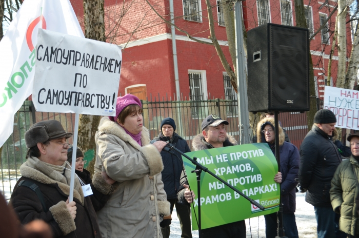 20 марта в Головинском районе состоялся митинг, организованный Московским «ЯБЛОКОМ», в защиту «Парка у Кронштадтского бульвара» от незаконного строительства. Итогом акции стала резолюция за сохранение объекта природного комплекса. Она будет направлена в Совет президента по правам человека.