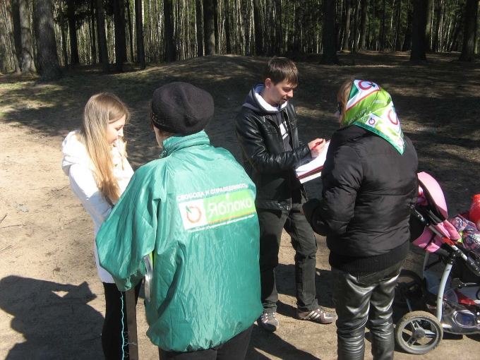 А пока яблочники обращаются к автомобилистам со следующей просьбой: «Призываем Вас оставить своего четырехколесного любимца перед въездом в лесопарковую зону. И прогуляться по лесу пешком. Вы получите значительно большее удовольствие от общения с природой, по-настоящему зарядитесь бодростью. От Вашего решения совершить пешую прогулку выиграют все: и гуляющие сегодня по лесу дети и взрослые, и лесной ландшафт, и лесная живность, которая не погибнет под колесами Вашего автомобиля. А еще – Ваши внуки, которым лес достанется в целости и сохранности. Потому что эта территория в будущем должна стать ПРИРОДНЫМ ПАРКОМ».