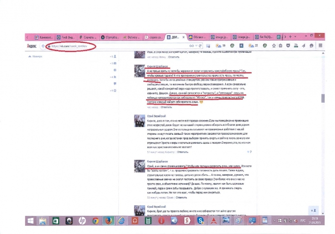 1. Скрин-шот поста Кирилла Щербакова в социальной сети «В контакте» с призывом «взять ну хотя бы черенки от лопат и проучить христофобскую мразь».