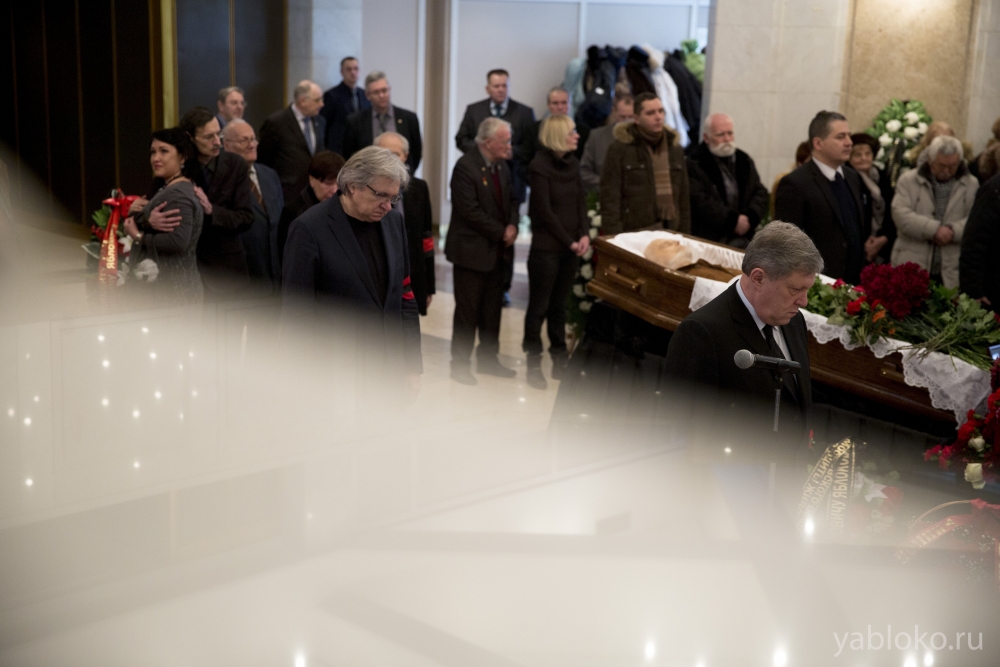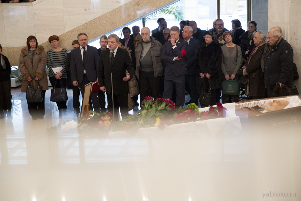 Председатель Федерального политического комитате партии «ЯБЛОКО» Григорий Явлинский в своем выступлении сказал, что в лице Алексея Яблокова вся Россия потеряла настоящего защитника. «Вы слышали, какого масштаба он был ученым, но более уникального и редкого человека, чем он, не знала российская политика. Он был человеком, не только занимавшимся теорией и наукой, не только высказывавшим свою гражданскую позицию, он был человек, который практически отдавал всю свою энергию, все свое здоровья – всего себя защите всех нас», — сказал Григорий Явлинский. По его словам, уникальность Алексея Яблокова заключалась и в том, что он в отличие от многих коллег-ученых понимал значение участия в политике. «Политика очень сложная и очень отталкивающая сфера, но он нашел в себе силы заниматься этим совершенно неблагородным и даже неблагодарным делом, потому что понимал, что без этого достичь практической реализации того, чему он посвятил свою жизнь, просто невозможно», — отметил лидер «ЯБЛОКА».