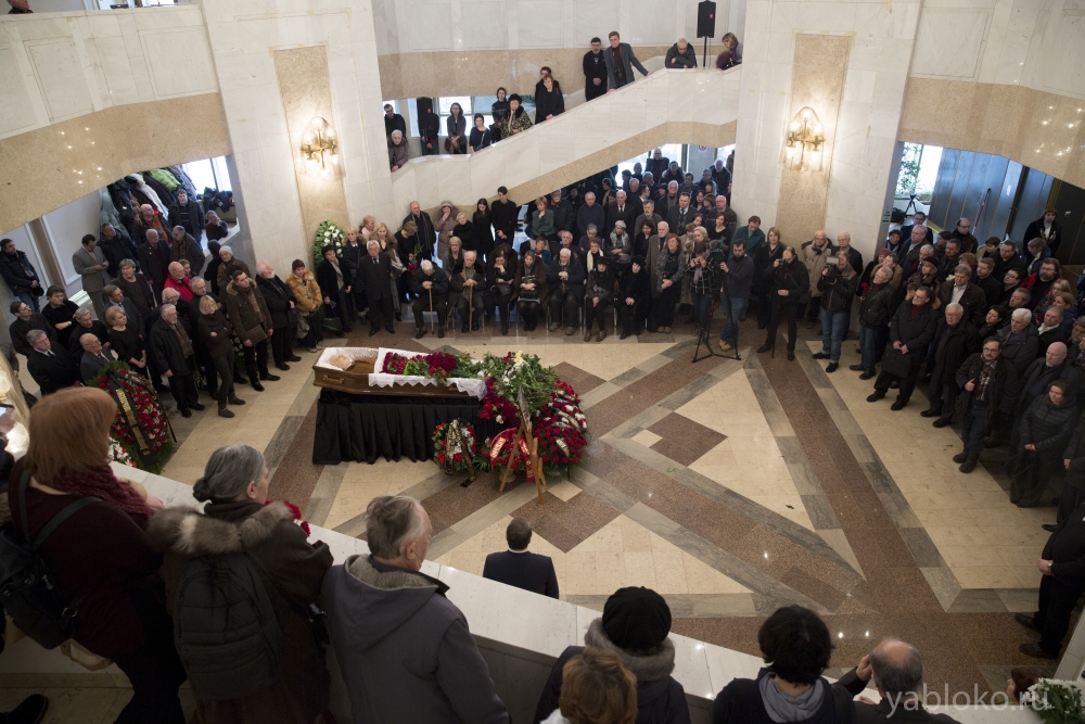 В Москве сегодня прошло прощание с выдающимся российским ученым и политиком, лидером фракции «Зеленая Россия» партии «ЯБЛОКО» Алексеем Владимировичем Яблоковым. Гражданская панихида состоялась в ритуальном зале президиума Российской академии наук, членом-корреспондентом и советником которой Яблоков был долгие годы. Сотни людей со всех уголков России приехали в РАН, чтобы проводить знаменитого эколога в последний путь.